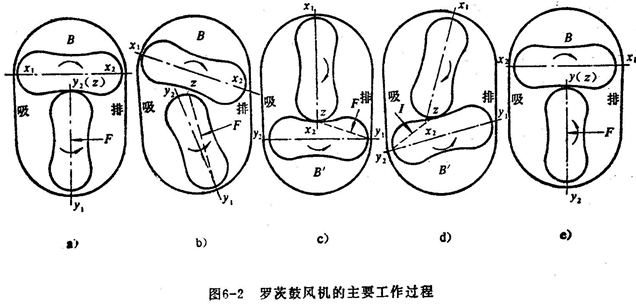 羅茨鼓風(fēng)機(jī)系屬容積回轉(zhuǎn)鼓風(fēng)機(jī),其按轉(zhuǎn)子的形狀可分為兩葉型和三葉型。三葉型轉(zhuǎn)子每轉(zhuǎn)動一次由 兩 個(gè)轉(zhuǎn)子進(jìn)行三 次吸、排氣。與二葉型相比,氣體脈動性小,振動也小,噪聲低.不問主要介紹一下二葉羅茨風(fēng)機(jī)的工作原理。